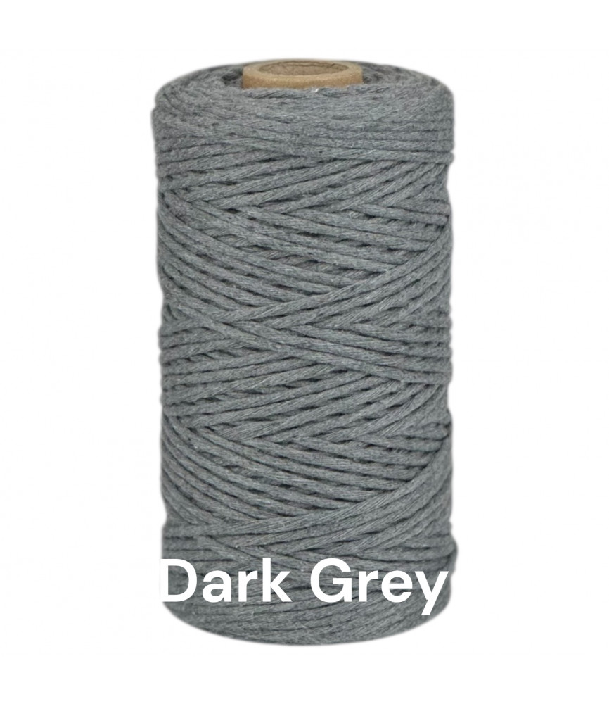 Dark Grey 1.5-2mm single twisted cotton cord 100 metres