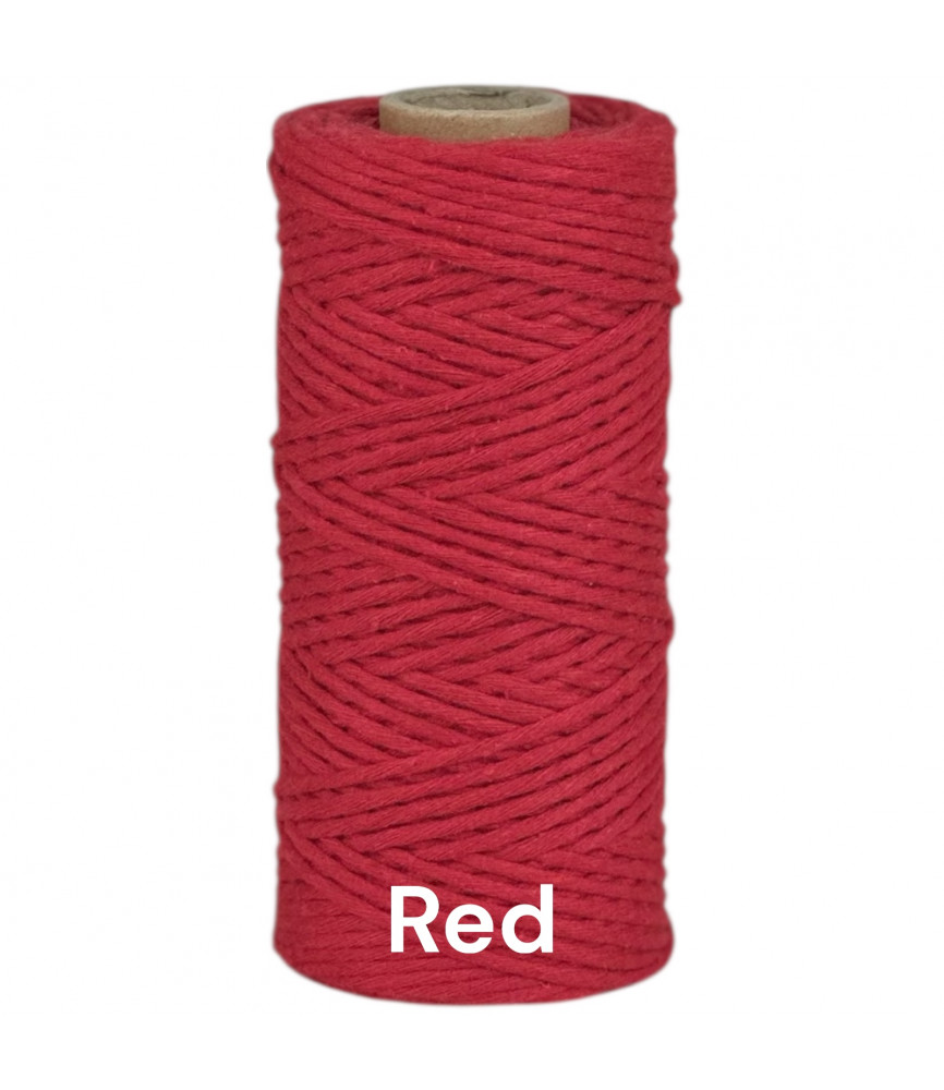 Red 1.5-2mm single twisted cotton cord 100 metres